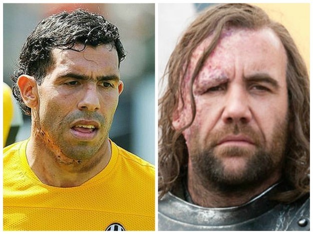 | Carlos Tevez và Hound trong phim gần giống nhau. |