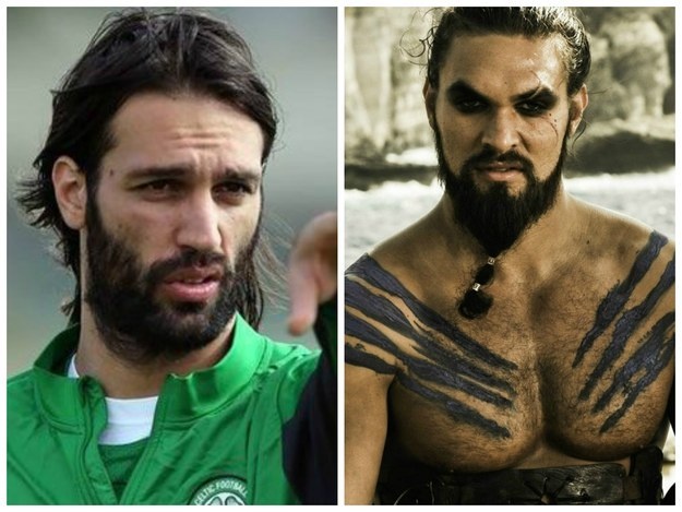 | Georgios Samaras và vị vua dũng mãnh của bộ tộc Dothraki - Khal Drogo. |