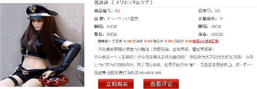 | Búp bê Phạm Băng Băng được rao bán công khai trên các trang mạng của Trung Quốc bằng tiếng Nhật và tiếng Trung Quốc. |