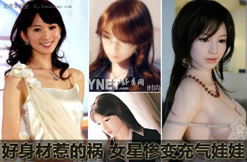 "Nữ hoàng scandal" Phạm Băng Băng cũng từng điêu đứng và nóng mặt khi hàng loạt búp bê người lớn với diện mạo của cô xuất hiện tràn lan trên các blog. Những con búp bê có gương mặt giống y đúc với ngôi sao của Đêm vui bất ngờ, thoạt nhìn ai cũng nghĩ ngay đó là Phạm Băng Băng. Mỗi con một trang phục, tư thế nhưng đều gợi cảm và thu hút. Phía công ty của Phạm Băng Băng cho biết, đây là một vấn đề khá nghiêm trọng nên đã gửi đơn tố cáo về hành vi của người sản xuất ra loại búp bê trên.