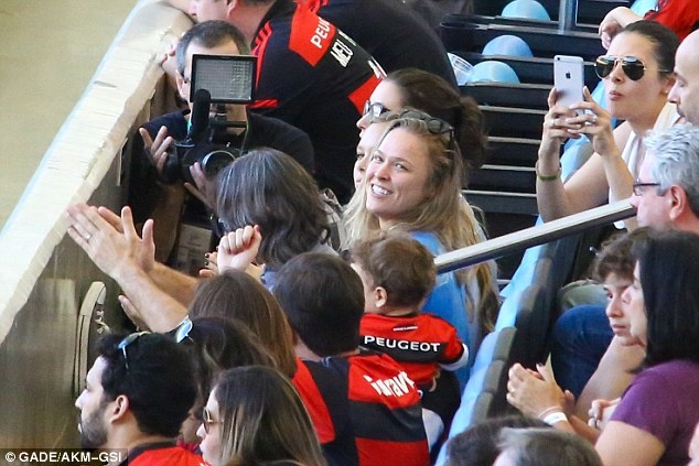 | Ronda Rousey cùng các thành viên trong gia đình đến xem trận bóng đá giữa Flamengo và Santos cuối tuần qua ở Brazil. Trước đó, nữ viên viên của phim "Fast & Furious 7" đánh bại đối thủ chủ nhà Bethe Correia để bảo vệ đai vô địch hạng gà (bantamweight). |