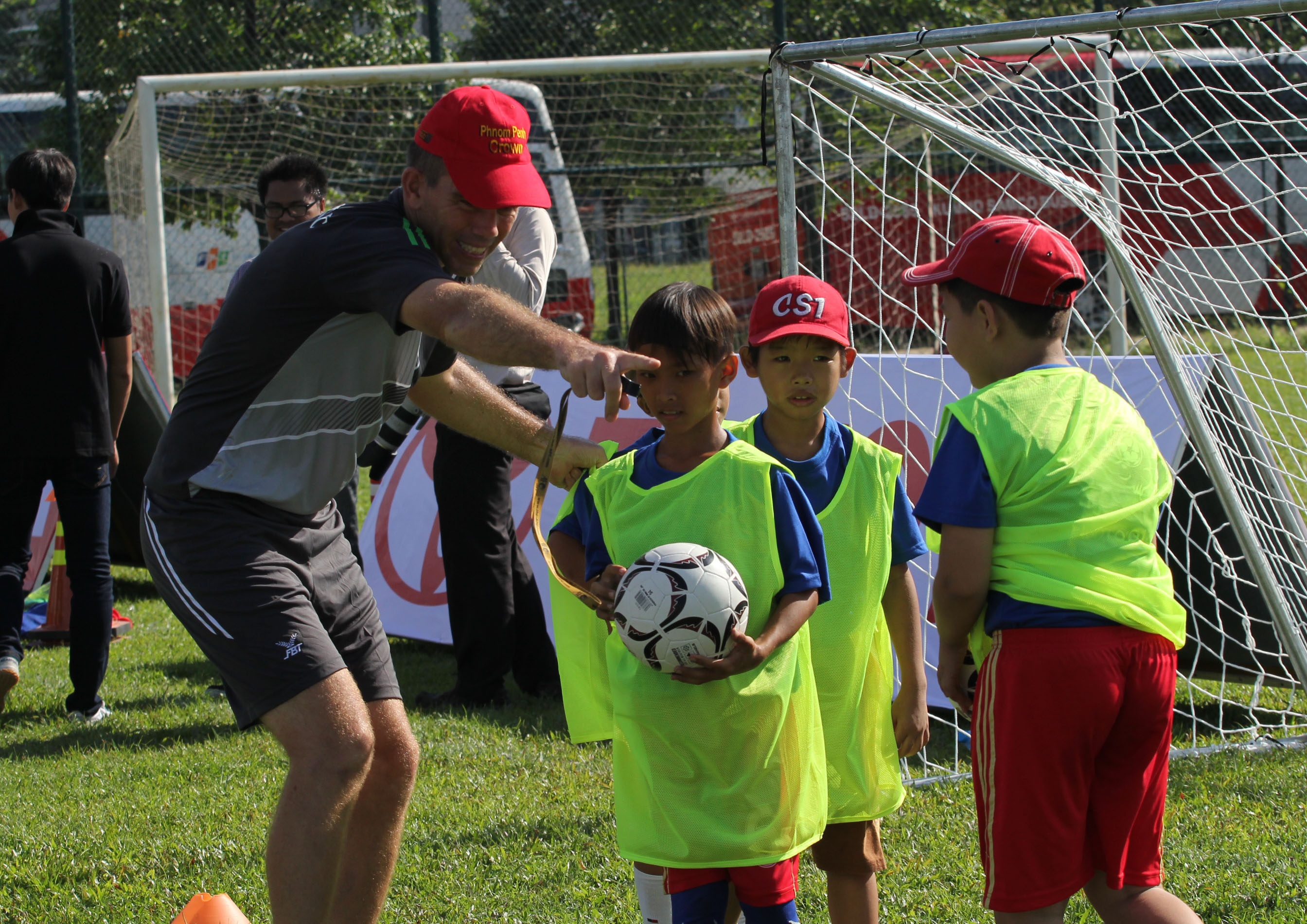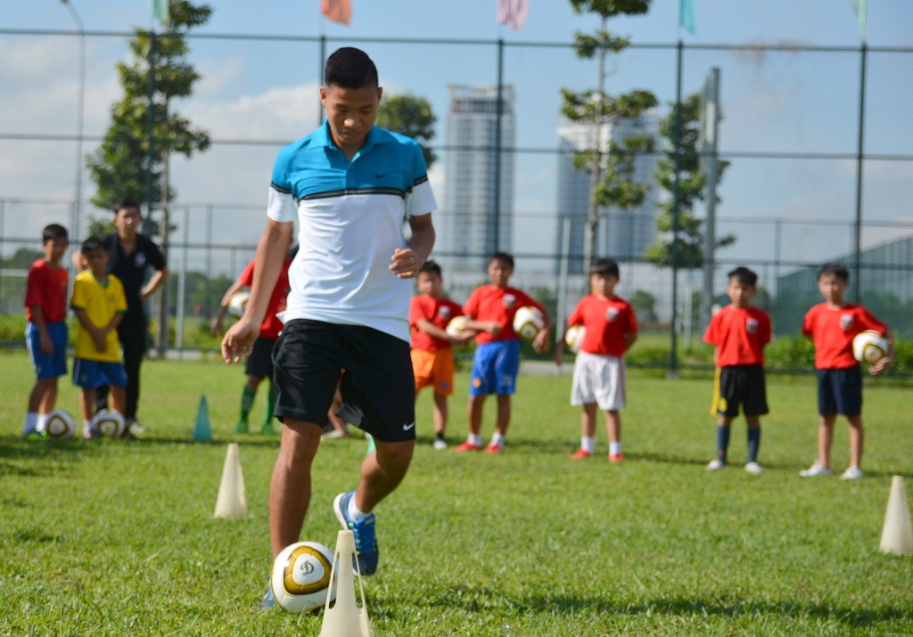 | Tham gia huấn luyện cho các cầu thủ nhí là 4 HLV Nguyễn Thanh Sơn (B.Bình Dương), Jonathan Lloyd Carter (Phnom Penh Crown), Phan Tôn Lợi (Hoàng Anh Attapeu) và Aung Khaing (Ayeyawady United). |