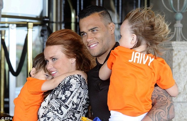 | Tiền đạo Dirk Kuyt chia tay vợ và các con. Những thiên thần nhỏ của ngôi sao người Hà Lan khá vui vẻ khi đưa tiễn bố sang dự World Cup. |