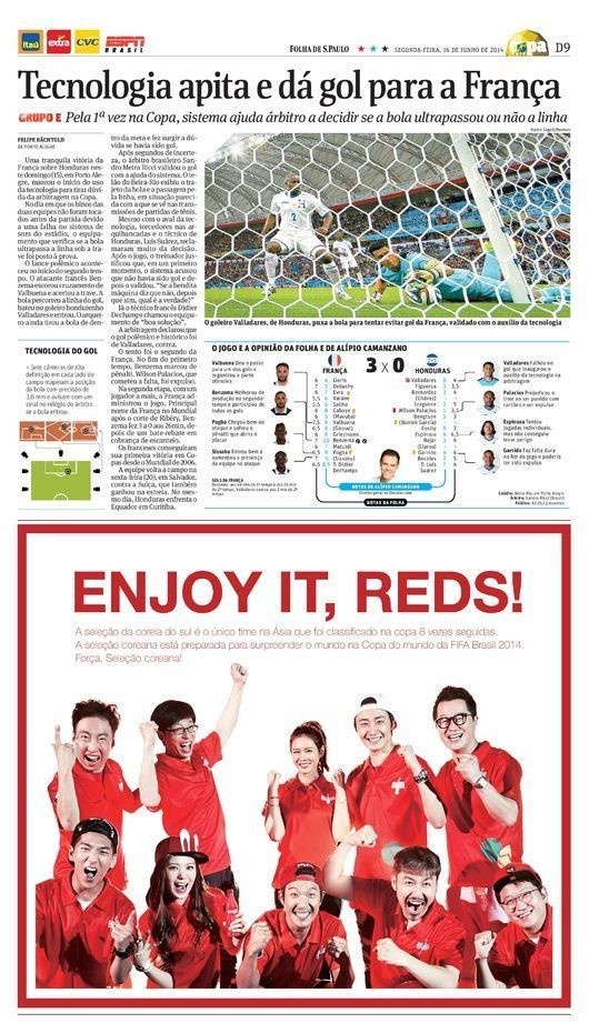 Đội cổ động của chương trình Infinity Challenge gồm những ngôi sao như Son Ye Jin, Jung Il Woo, Baro (B1A4), Lizzy (After School), Ji Sang Ryul... còn "chơi trội" hơn khi bỏ tiền mua hẳn trang quảng cáo trên một tờ báo ngày ở Brazil để cổ vũ cho đội tuyển quốc gia Hàn Quốc.