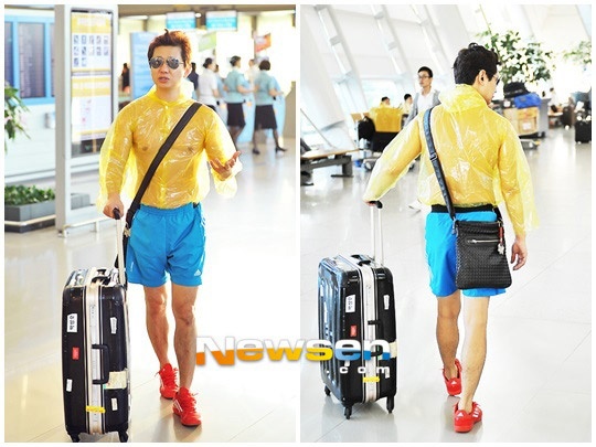 Sao Hàn gây sốc khi mặc áo mưa, quần đùi ở sân bay