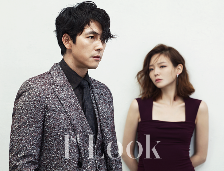 | Jung Woo Sung và Esom trên tạp chí 1st Look số mới. |