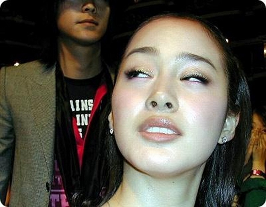 | Jang Na Ra dọa người hâm mộ khi làm trò lè lưỡi và mắt lé. |