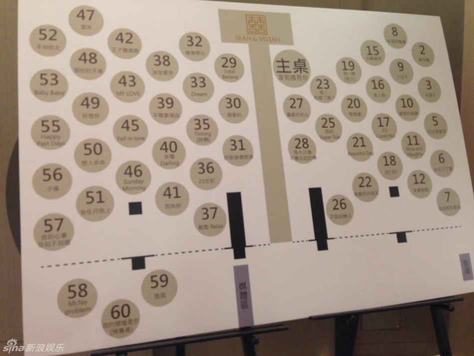 | Vị trí các bàn tiệc. Từ Nhược Tuyên đã lấy tên các ca khúc của cô để đặt cho từng bàn tiệc. |