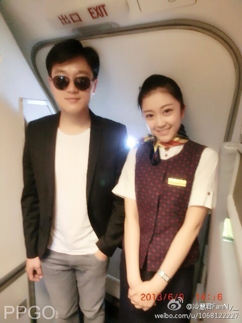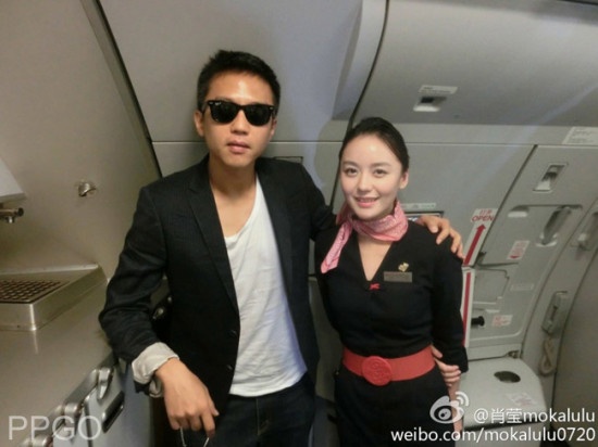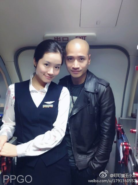 | Triệu Hiệu Đình và nữ tiếp viên xinh đẹp trông rất đẹp đôi. |