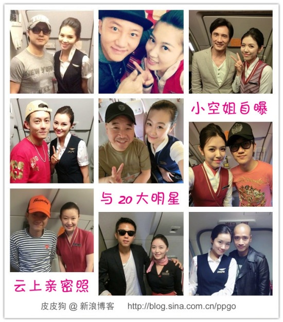| Nhiều sao Hoa ngữ không ngần ngại tạo dáng xì tin với các chiêu đãi viên hàng không. |