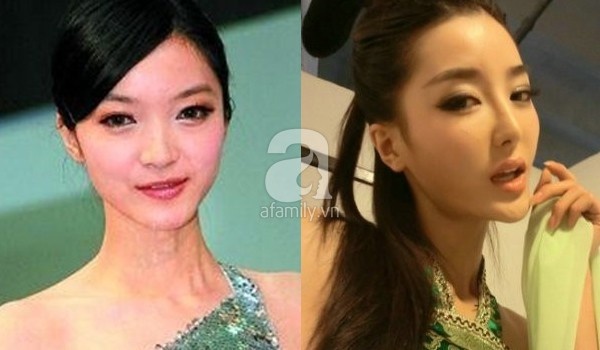 | Khuôn mặt "nguyên sơ" của Lý Tiểu Lộ có khuôn hàm bạnh, trông hơi cứng và nam tính. Sau khi nhờ cậy "dao kéo", chiếc cằm của người đẹp đã nhanh chóng được "phù phép" trở nên dài và nhọn hoắt rất đúng trào lưu. |