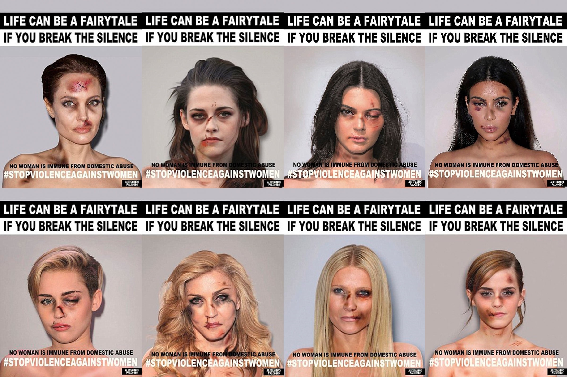 Loạt diễn viên, ca sĩ, người mẫu quốc tế hàng đầu đồng loạt tham gia dự án chống bạo hành gia đình với gương mặt bầm tím gửi đi những thông điệp ấn tượng.