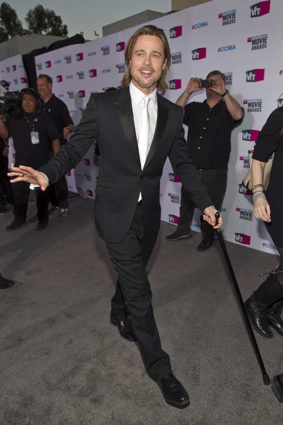 Mr Smiths vẫn lịch lãm khi xuất hiện cùng chiếc nạng chống trên thảm đỏ Critics Choice Movie Awards diễn ra ở L.A hồi đầu năm ngoái. Anh bị thương do trượt chân trong lúc bế cô con gái Vivienne của mình.