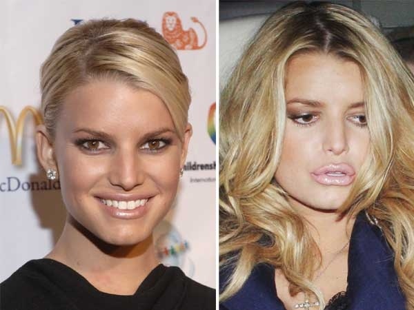 3. Jessica Simpson: Do tiêm chất làm đầy môi quá nhiều, khuôn miệng của cô ca sĩ tóc vàng kém tự nhiên, đôi môi của cô khó khép lại và cong veo bất thường. Ảnh: Santabanta |