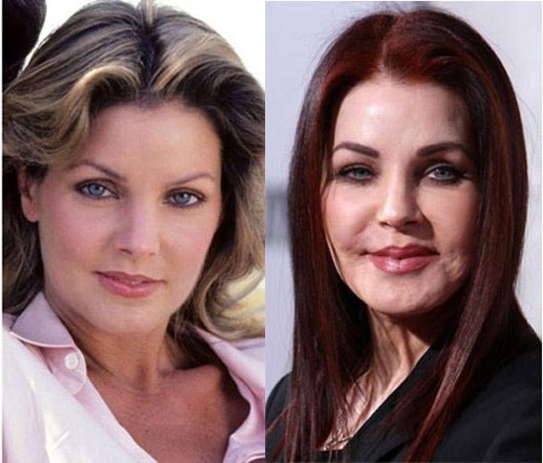 4. Priscilla Presley: Vợ cũ của ông vua nhạc rock & roll Elvis Presley là nạn nhân của vụ lừa đảo tiêm botox tai tiếng. Thay vì sử dụng botox chuẩn theo như thỏa thuận ban đầu, bác sĩ người Argentina, Daniel Serrano, đã dùng silicon chất lượng thấp - nguyên liệu bôi trơn các bộ phận ôtô. Hậu quả sau đó làm khuôn mặt của Priscilla chảy xệ, đôi môi méo mó khiến mọi hoạt động ăn uống, nói cười đều đau và khó khăn. Ảnh: Makemeheal |