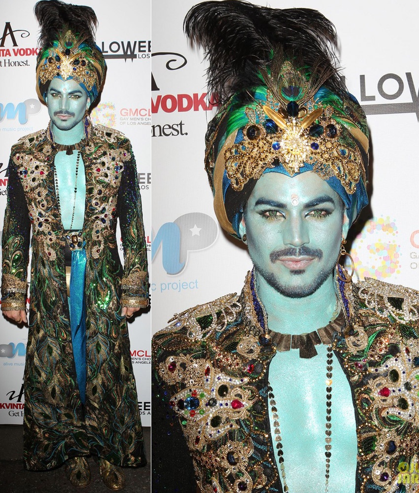 | Á quân American Idol Adam Lambert như một vị thần đèn quý tộc khi tham dự concert Halloween của Fred và Jason tại Los Angeles tối 25/10. |