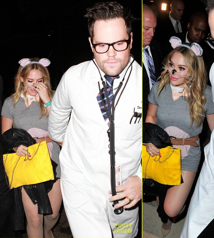 | Hilary Duff làm nàng mèo xinh xắn khi cùng chồng dự tiệc Halloween ở nhà Mike Meldman. |