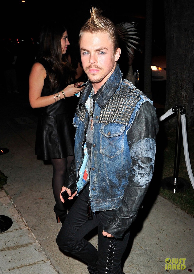 | Trong khi đó, anh trai Julianne Hough - chàng vũ công Derek Hough - hầm hố với chiếc áo bò đính kim loại, in hình đầu lâu và mái tóc mohican quyến rũ. |