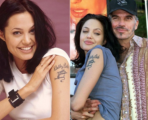 | Tuy nhiên, sau khi hôn nhân tan vỡ, Angelina Jolie đã xóa hình xăm cũ và thay vào đó là dòng kinh độ vĩ độ nơi sinh của các con và Brad Pitt. Ảnh: Us Magazine |