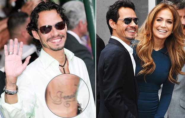 | Thời còn bên nhau, Marc Anthony từng xăm tên vợ Jennifer Lopez trên cổ tay phải. Nam ca sĩ Latin giải thích muốn để tên vợ ở đó để anh có thể nhìn thấy mọi lúc mọi nơi. Ảnh: Hello Magazine |