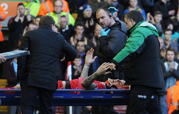 | Người hâm mộ The Kop thở phào khi Skrtel giơ hai tay báo hiệu mình ổn trong lúc được các nhân viên y tế đưa ra khỏi sân. |