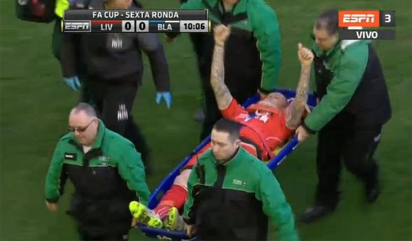 | Sau pha không chiến với Rudy Gestede ngay ở phút thứ 3, Martin Skrtel ngã đập gáy xuống sân. Cú rơi tự do khiến trung vệ của Liverpool bị bất tỉnh. |