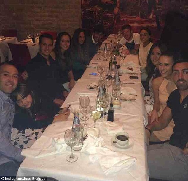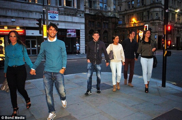 | Tân binh Alberto Moreno tranh thủ dẫn bạn gái Lilia Granadilla ra mắt đồng đội. |