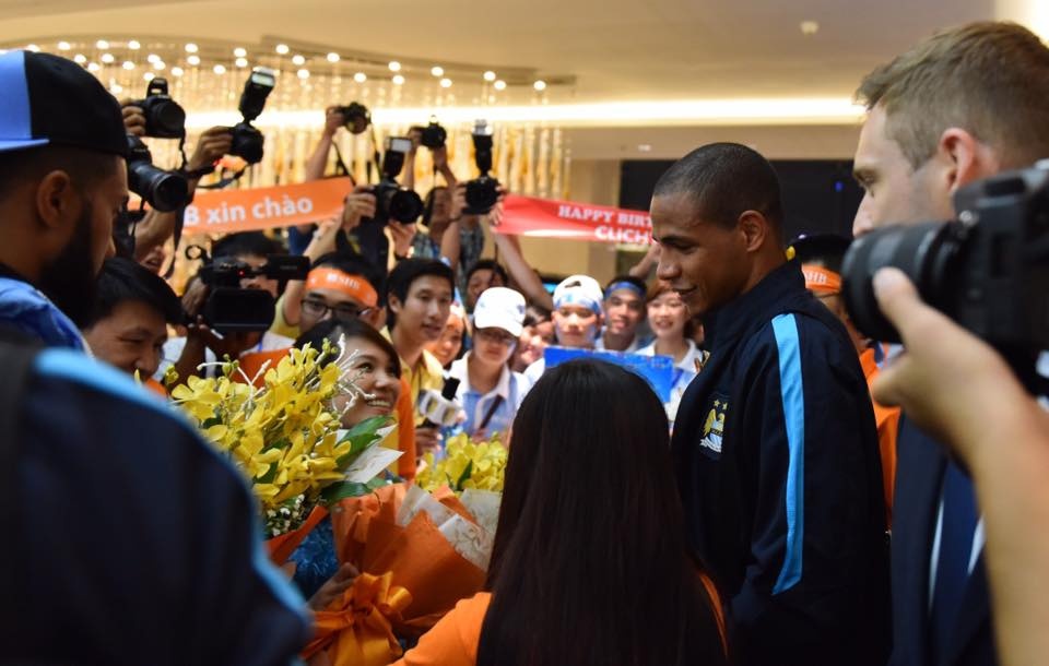 | Người đứng đầu của CLB Hà Nội T&T cảm ơn người hâm mộ Việt Nam về sự chào đón nồng nhiệt Man City. Ảnh: Lê Hiếu. |