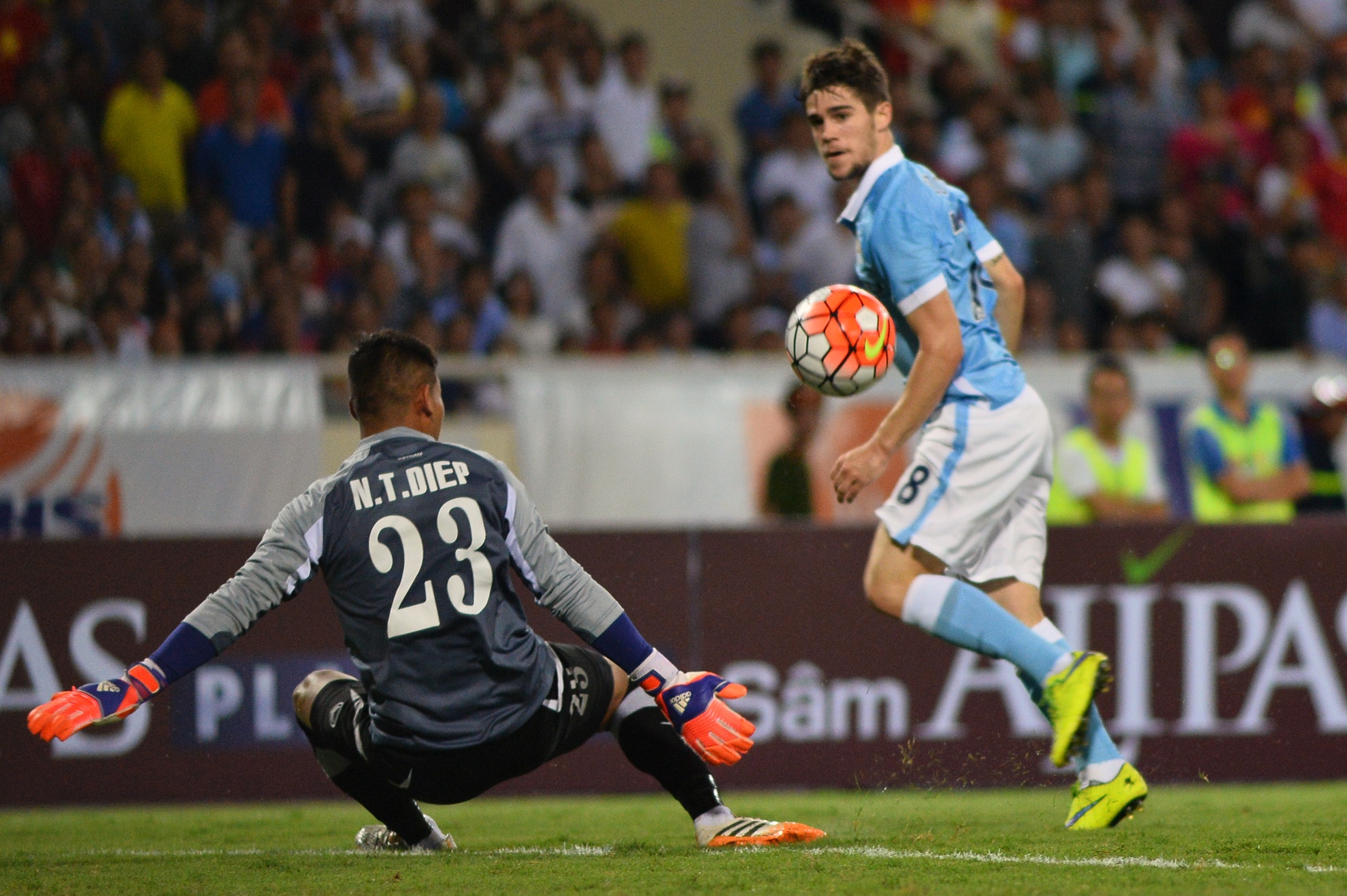 Chỉ ít phút sau (phút 78), Jose Angel Pozo thực hiện pha lốp bóng kỹ thuật qua đầu thủ thành Thanh Diệp nâng tỷ số lên 8-0 cho Manchester City.