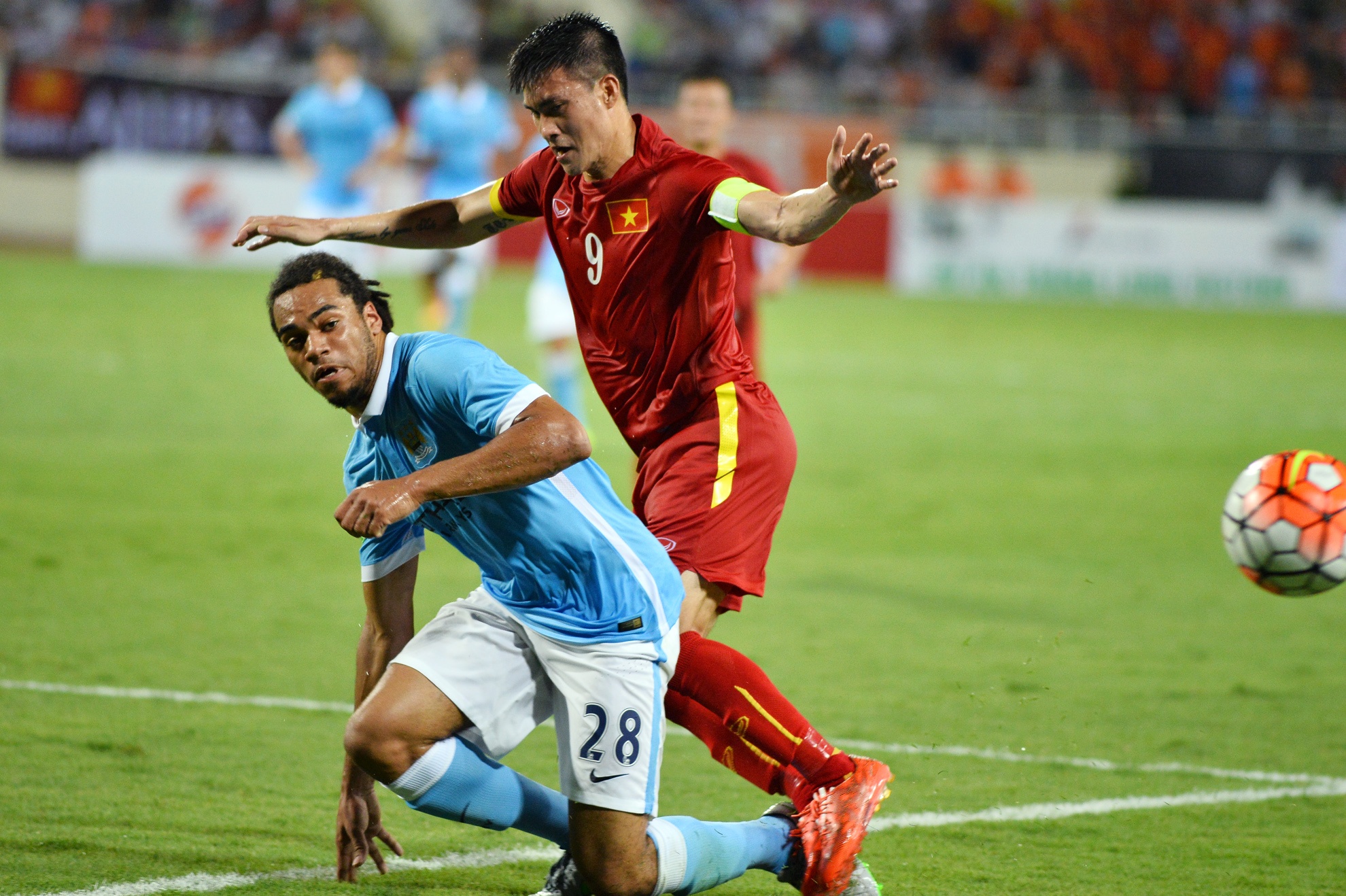 Bên phía đội bóng áo xanh, tân binh Sterling nắm vai trò chủ chốt trên hàng công, không ít lần khiến hàng phòng ngự tuyển Việt Nam chỉ còn biết nhìn và chạy theo bóng. Tiền đạo mang áo số 7 đã đóng góp 2 (phút 19 và 30) trong tổng số 8 bàn thắng mà Man City ghi được vào lưới hai thủ môn Tô Vĩnh Lợi và Nguyễn Thanh Diệp. Cuối trận, anh còn đoạt danh hiệu cầu thủ xuất sắc nhất trận, còn Văn Quyết là tuyển thủ Việt Nam chơi hay nhất đội với bàn thắng danh dự ghi được vào lưới Joe Hart ở phút bù giờ.