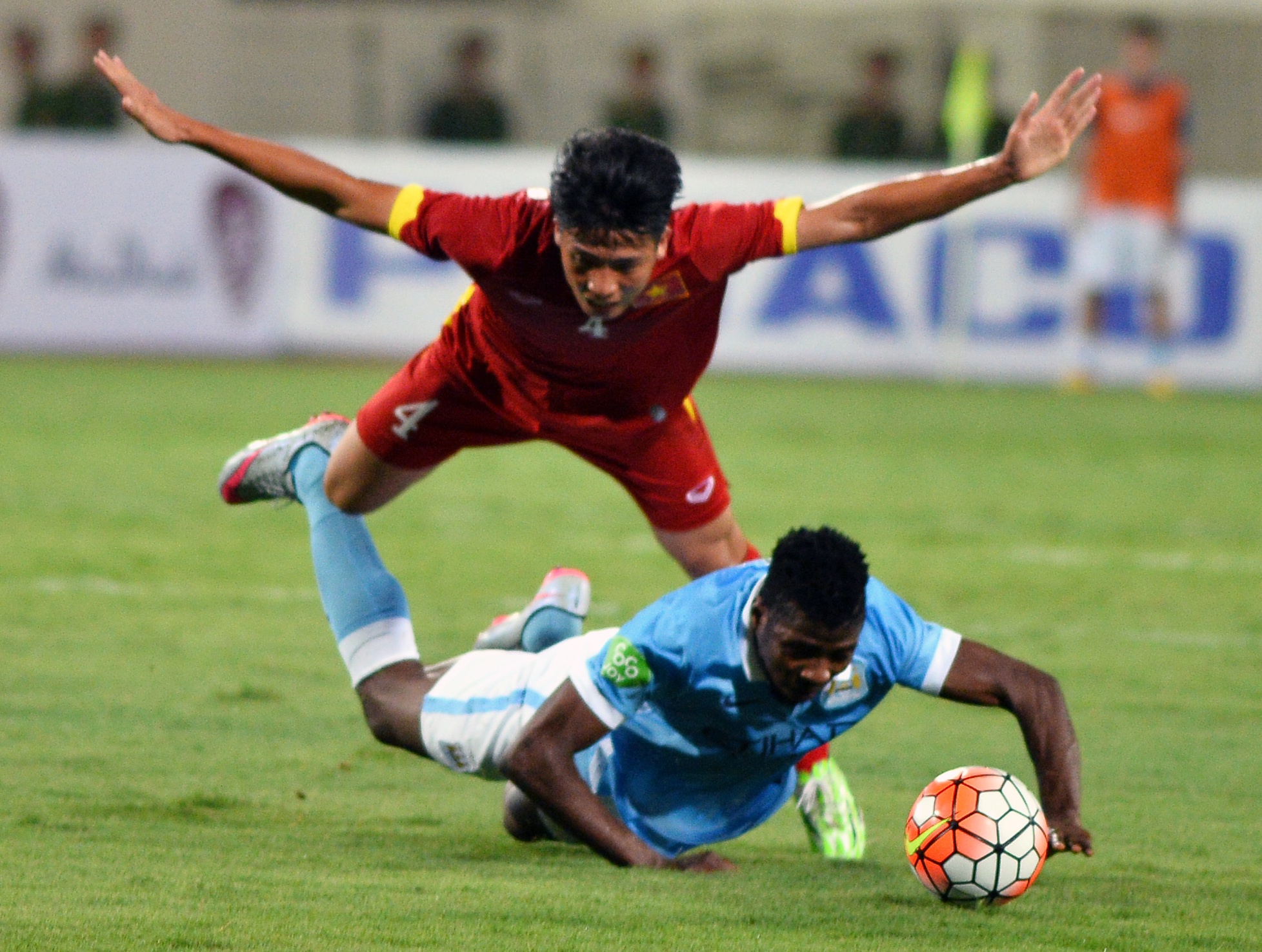 | Cả trận Công Vinh có được vài pha lên bóng ở cánh nhưng đều không hiệu quả. Mọi phương hướng tấn công của tuyển Việt Nam đều bị hàng phòng ngự của Mangala vô hiệu hóa. Còn thủ thành Tô Vĩnh Lợi thì liên tục vào lưới nhặt bóng. |