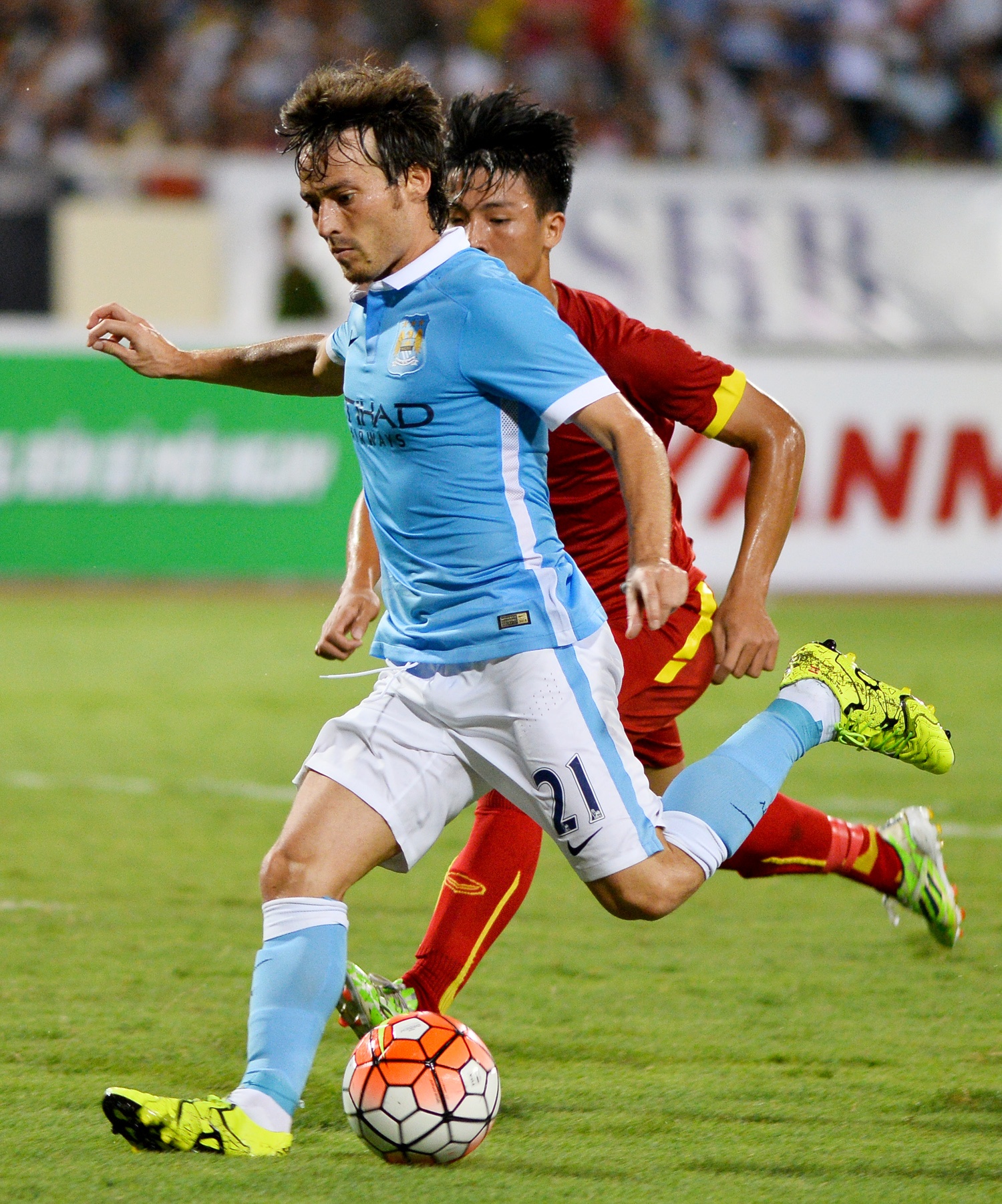 David Silva cũng hai lần xé tung mành lưới tuyển Việt Nam ở các phút 21 và 65. Tiền vệ người Tây Ban Nha chơi khá ăn ý với Sterling. Cặp đôi này thường xuyên đưa bóng xuống biên cánh trái và tạt vào vòng 16m50 cho đồng đội.