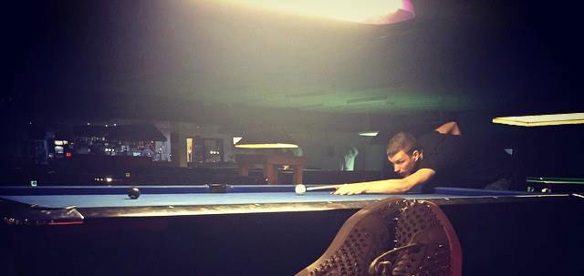 | Tiền đạo Edin Dzeko dành thời gian rảnh rỗi chơi bi-a. Anh là tiền đạo mang về khá nhiều bàn thắng cho Man City mỗi khi vào sân từ ghế dự bị |