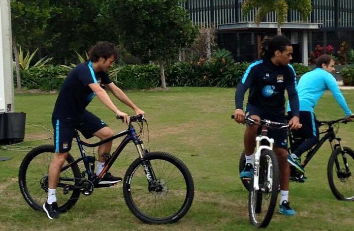 | Tuyển thủ người Tây Ban Nha cùng đồng đội có thú vui đạp xe trong khuôn viên ở những nơi đóng quân. |