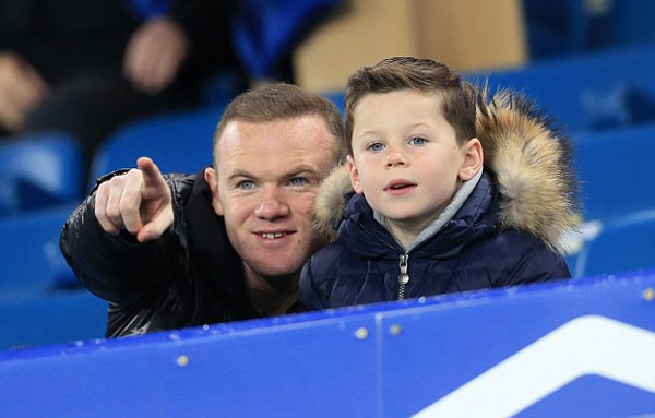 | Rooney không đồng hành cùng đội vì đang chấn thương. Ngôi sao MU tranh thủ đưa con đi xem bóng đá trên sân Goodison Park. |