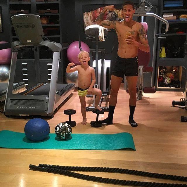 | Trước đó, hai bố con khiến người hâm mộ bật cười với bức ảnh cởi trần trong phòng gym. |