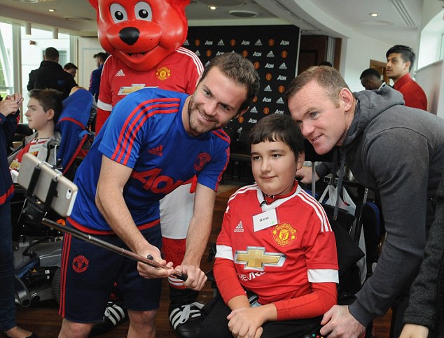 | Juan Mata và Wayne Rooney cùng selfie với fan nhí của Quỷ đỏ. Trong khi tiền vệ người Tây Ban Nha đang thi đấu khá ấn tượng với 2 bàn thắng sau 6 trận tại Premier League, "gã Shrek" lại ít nhiều gây thất vọng khi chưa có nổi một pha lập công nào. |