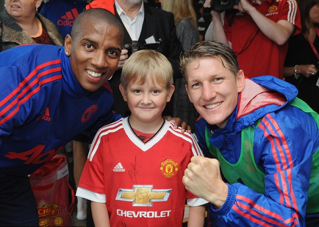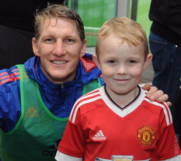 | Tuyển thủ Đức chụp ảnh lưu niệm cùng Ashley Young và fan nhí. |