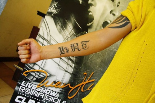 | Đàm Vĩnh Hưng cho biết, ban đầu anh không hề thích việc xăm mình. Nhưng trong một phút ngẫu hứng, Mr Đàm quyết định chịu đau để có một hình xăm trên ngực. Tác phẩm của anh là một chữ H có thêm đôi cánh, với ý nghĩa là “tự hào vì cái tên ba mẹ đã đặt cho”. |