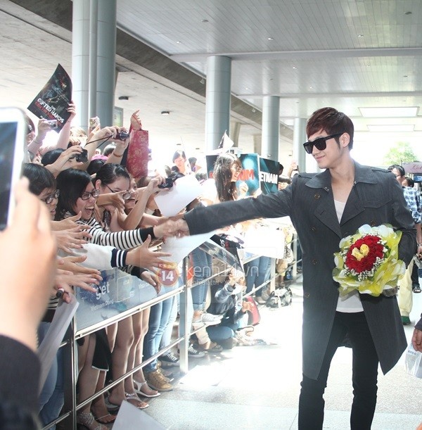 | Sau đó, anh bất ngờ rời Việt Nam để sang Nhật tham dự fan meeting. Sau 3 ngày, Ki Kwang tiếp tục lịch trình tại Việt Nam để hoàn thành nốt những cảnh quay cuối cùng. Có thể nói, Ki Kwang là nghệ sĩ nước ngoài đến Việt Nam 2 lần với độ cách về thời gian ngắn nhất. Hình ảnh anh thân thiện vẫy tay chào fan. |