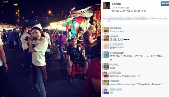 | Mới đây, cô nàng xinh đẹp Son Dam Bi đã khoe ảnh thưởng thức thú vui ăn đêm tại Việt Nam. |