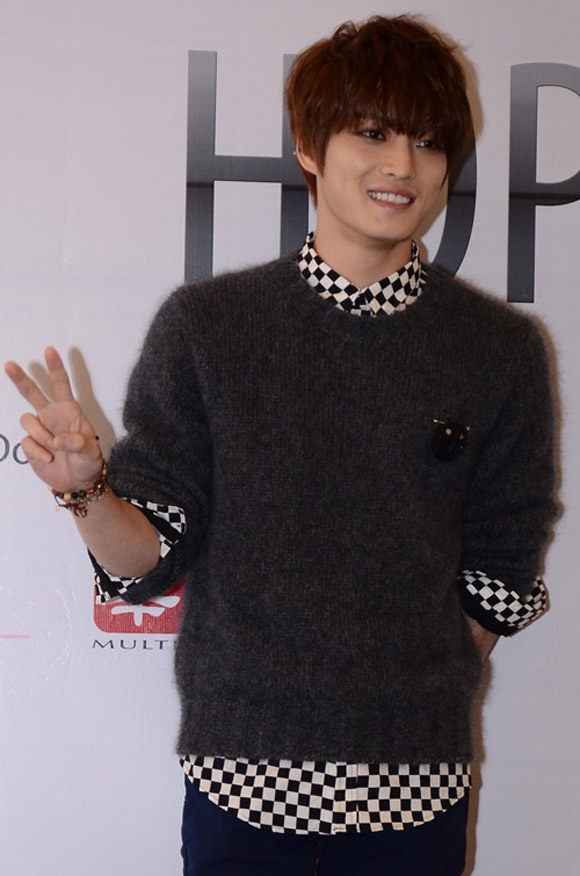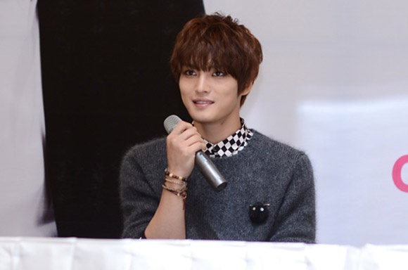 | Jae Joong dí dỏm trả lời tại buổi họp báo. |