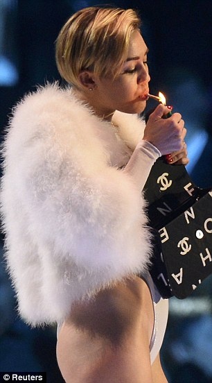 Miley bị chỉ trích vì hút cần sa trên sân khấu lễ trao giải. |