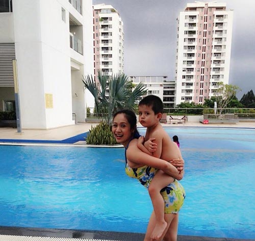 | Thanh Thúy có những kỷ niệm rất ngộ khi lần đầu tiên đưa bé Cà Phê đến nhà trẻ. |