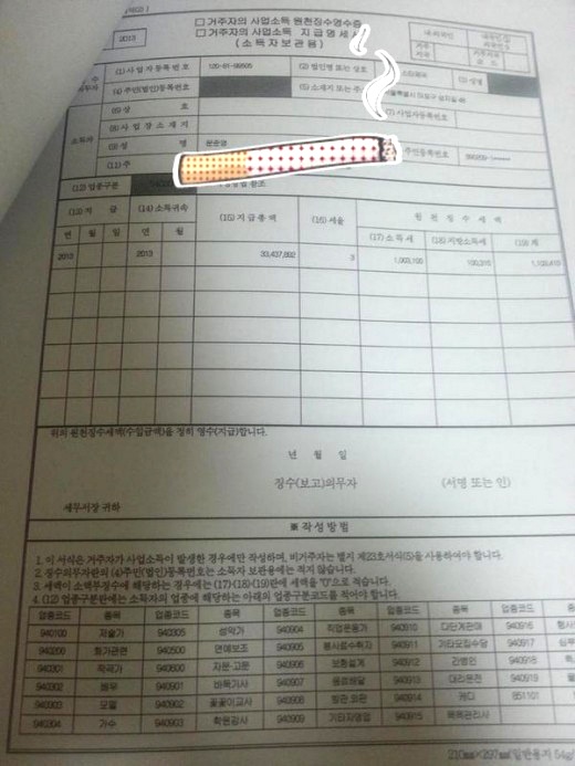 Theo những con số trên văn bản, người có liên quan kiếm được khoảng 33 triệu won, phải trả 1,1 triệu won tiền thuế và "đút túi" 31,9 triệu won (khoảng 638 triệu đồng).