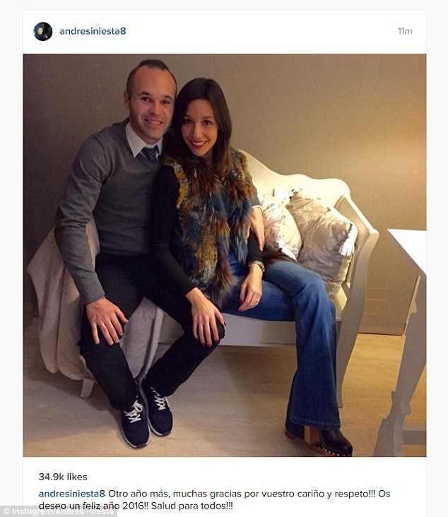 | Tiền vệ của Barcelona, Andres Iniesta đón năm mới cùng vợ, Anna tại nhà riêng. |