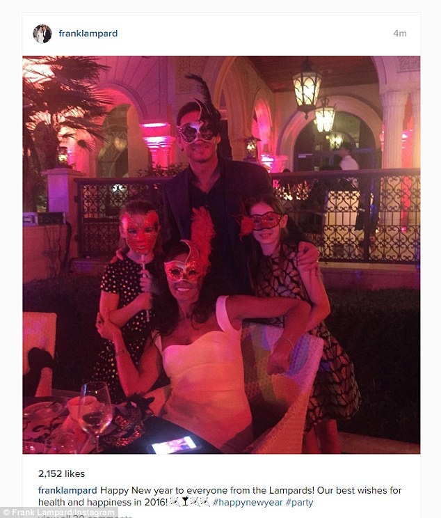 | Tiền vệ lão tướng Frank Lampard bên gia đình. "Chúc mừng năm mới tới mọi người. Chúc các bạn dồi dào sức khỏe và hạnh phúc trong năm 2016", cựu ngôi sao Chelsea chia sẻ. |