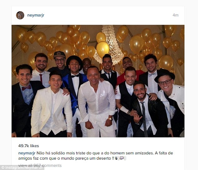 | Tiền đạo trẻ Neymar (thứ 5 từ trái sang phải) của Barca đón năm mới cùng bạn bè. |