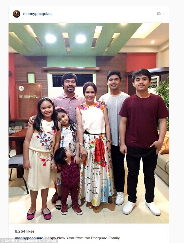 | Võ sĩ người Philippines Manny Pacquiao cùng gia đình. |