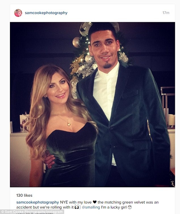 | Hậu vệ Chris Smalling của MU bên bạn gái xinh đẹp Sam Cooke. |
